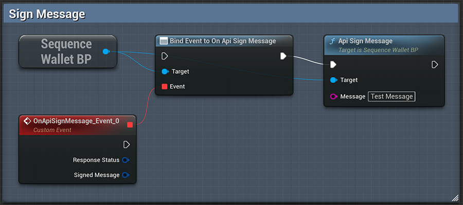 Sign a given message as a hex string. For example, you can use this signature to validate content on your backend.- Blueprint