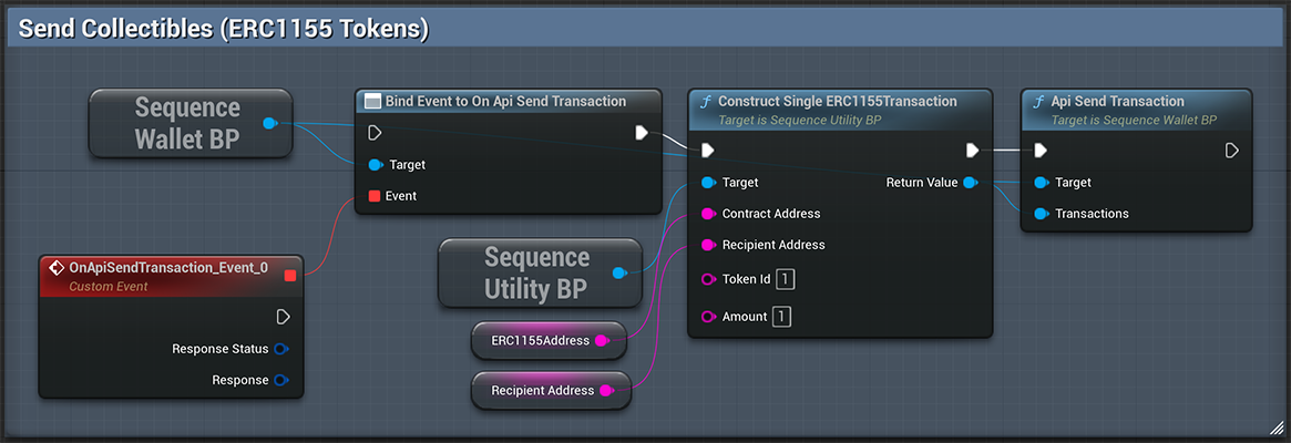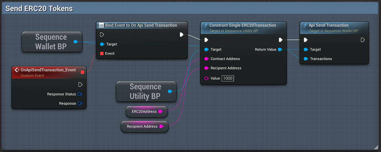 Send your custom ERC20 tokens from Builder to users, or transfer existing tokens like USDC or WETH.- Blueprint